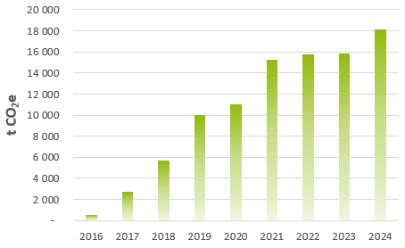 Von unseren Kunden dank innovativer Produkte eingesparte CO2-Volumen