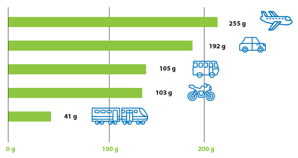 Aufgeführt in Gramm CO2 pro Personenkilometer